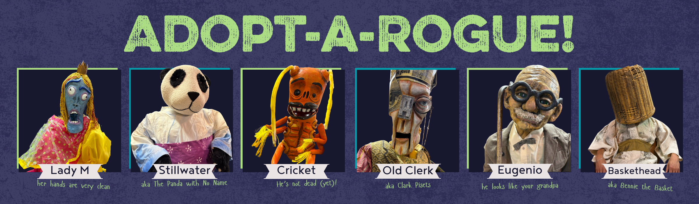 In our twenty-one-year history, this is our first Adopt-a-Rogue Fundraiser, where you can symbolically adopt one of our most treasured creations and support all the Rogues in their coming year (while also securing yourself a tax write-off!)